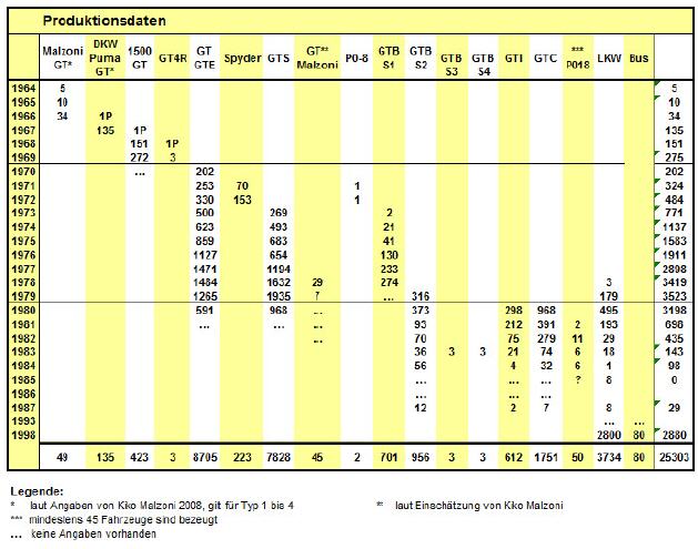 Aus den Aufzeichnungen des Herstellers und Einschätzungen von Experten unter denen sich auch der Sohn des Firmengründers Kiko Malzoni befindet, lassen sich folgende Produktionszahlen ableiten: